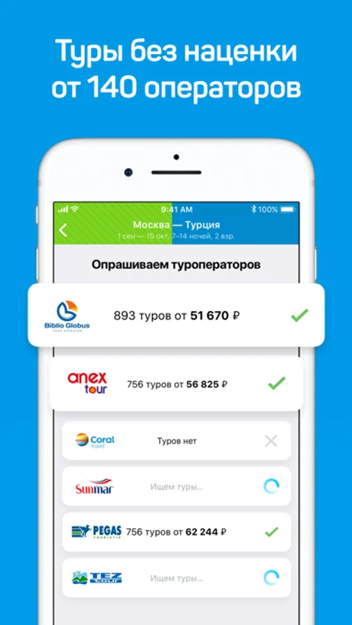 Крупнейшая система выбора туров Слетать.ру работает более чем со 130 туристическими операторами России, и предлагает вам мобильное приложение, которое в режиме реального времени позволит: