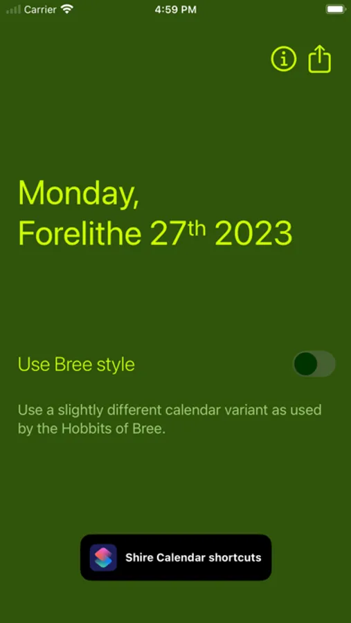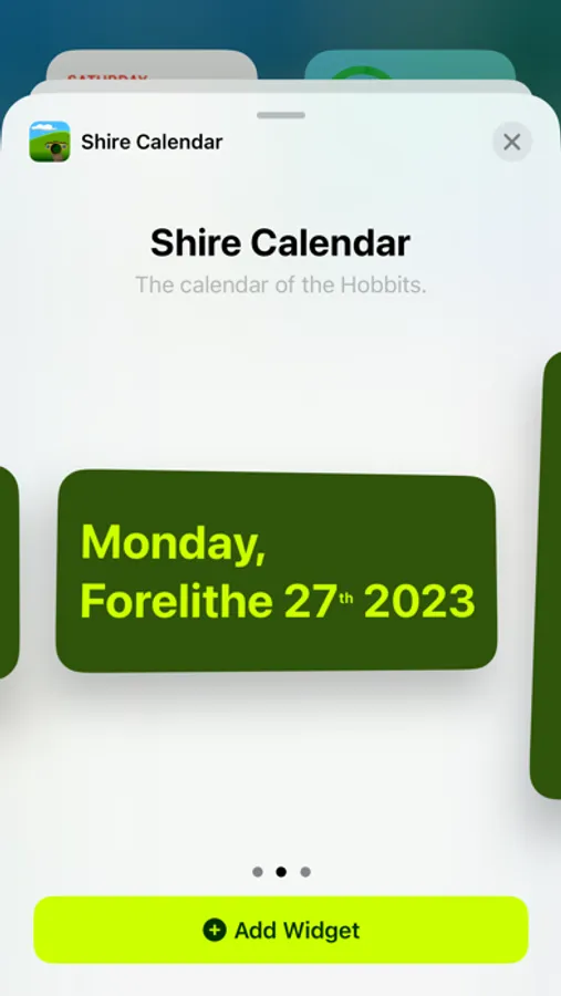The Shire Calendar brings a bit of Middle-earth to your iOS device and Apple Watch. It will display the current day in the calendar of the Hobbits in the app or optionally in one of the available widgets or Watch complications.