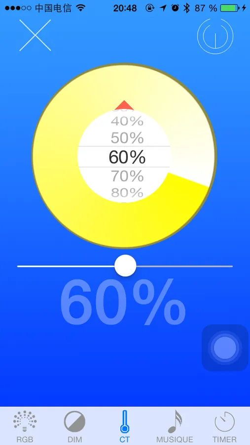 Use this app connect with bluetooth light to control it.Changing light color,color temperature,and jumping with music.