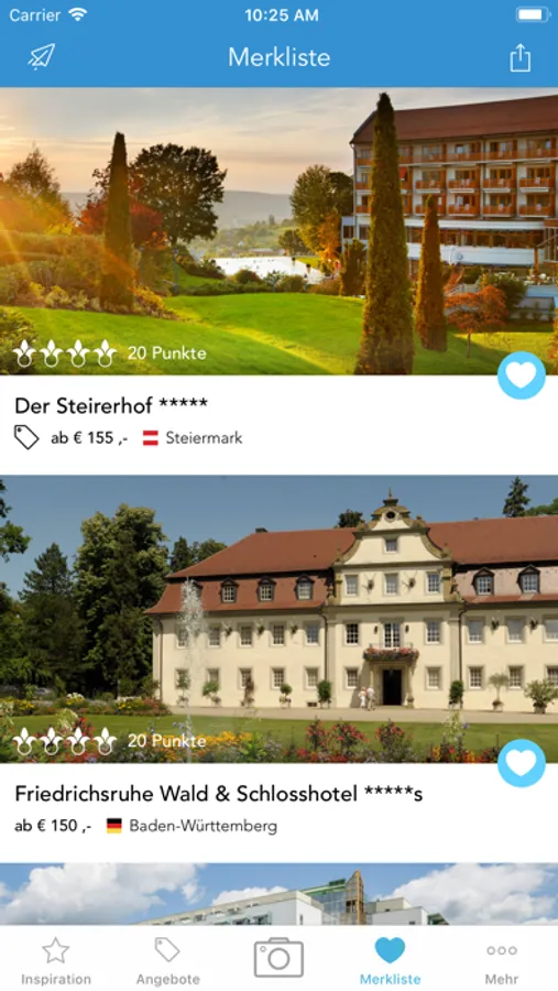 * Versenden Sie die Merkliste an Ihre Liebsten und Ihre Mitreisenden