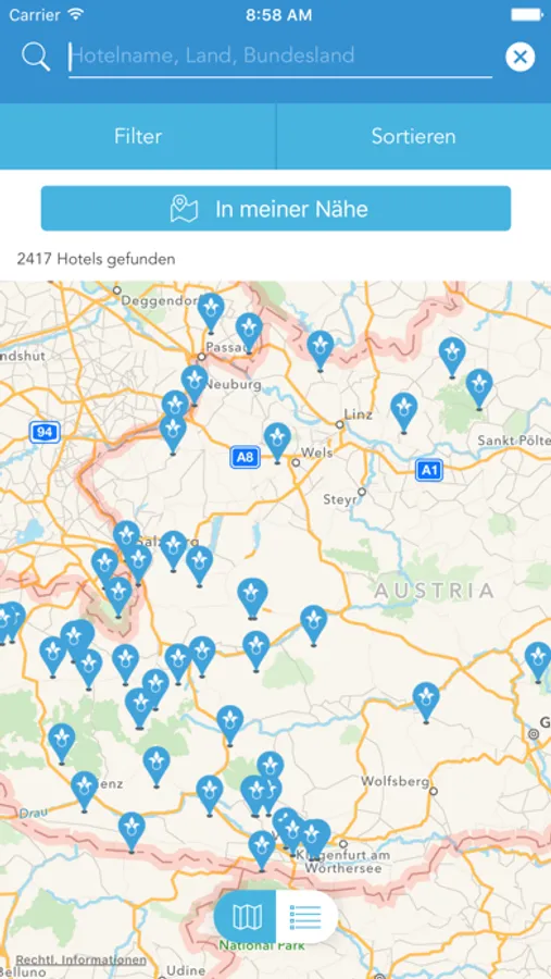 * Auf Wunsch zeigt Ihnen die App auch alternative Hotels in der Region