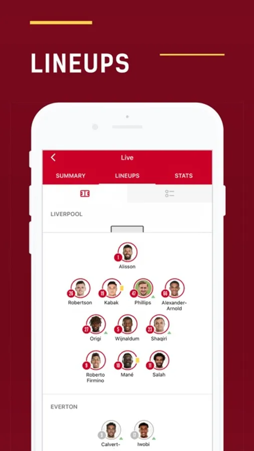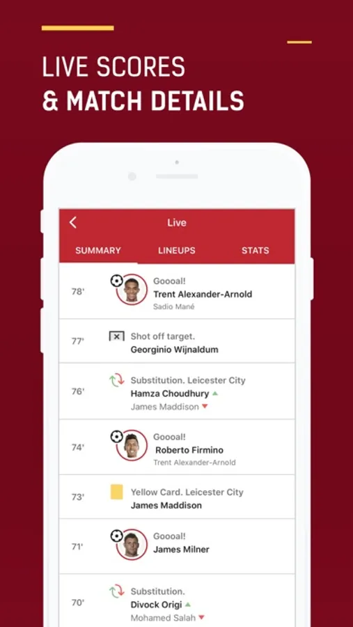 √ Adjust notifications for live scores and results, lineups, substitutions, yellow and red cards.