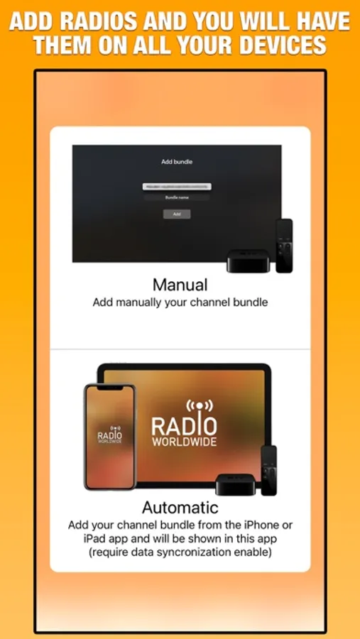 Add all the radios you want and save all your radios in iCloud, so you will have them on any iPhone or iPad. And if you have an AppleTV, the radios will automatically be on your television.