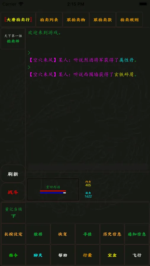 西游记剧情。取消了所有原来MUD游戏的指令输入,全部改为点击完成。