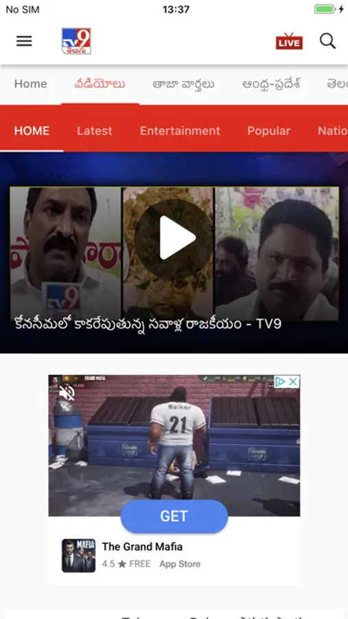 TV1: niche channel in telugu devoted to Entertainment and News.