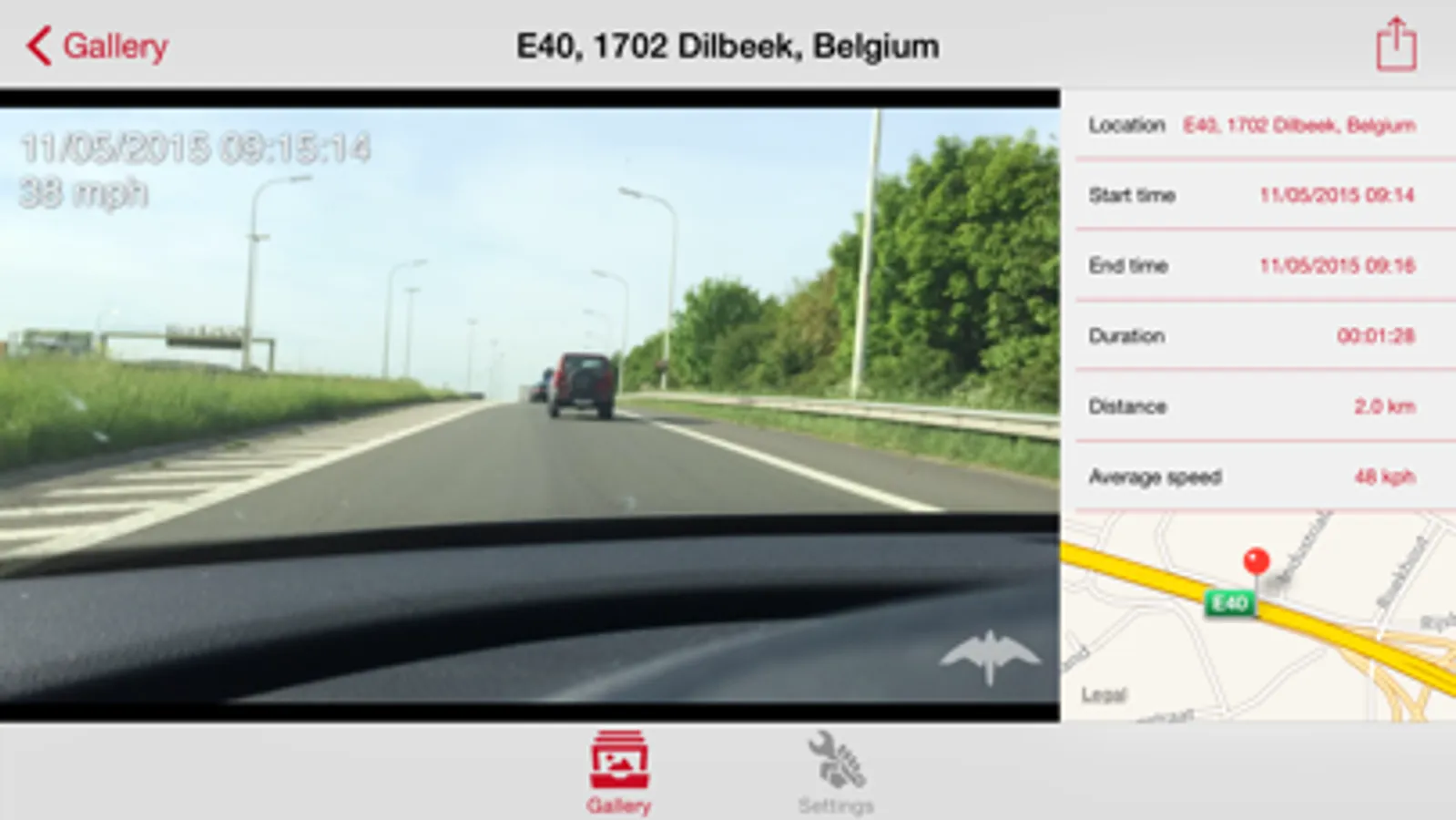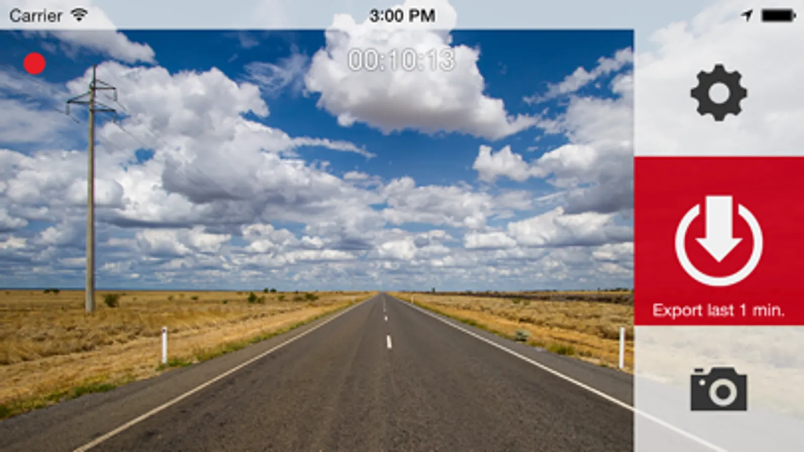 See something you want to save? Just press the big red button on the screen or on your Apple Watch and a recording of the last minute (or minutes*) gets stored on your phone, including trip information like speed, location and time.