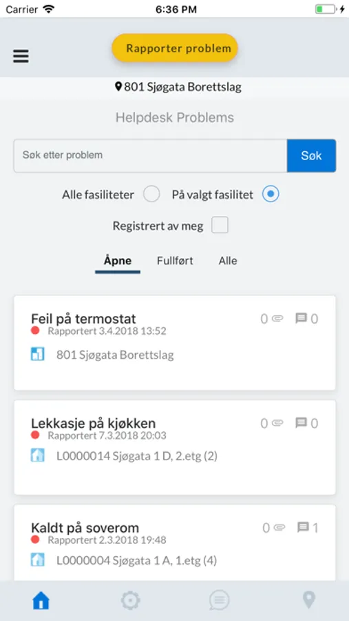 - Show helpdesk messages on facilities with color indicator for status and easily distinguish between open and closed issues, create new things either fast without image or through taking photo and choose case for more information as well as editing title and description