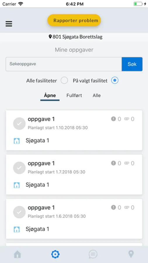 - If the user is assigned with tasks, it will be possible to view tasks on the selected facility, choose a task for more information and mark tasks performed.