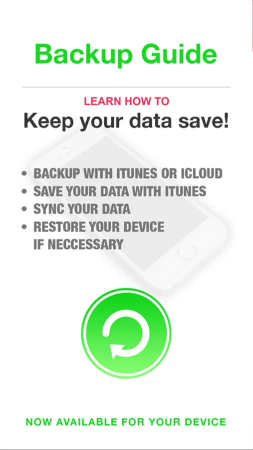 Disclaimer: This app is a guide that explains how to do a backup on your device. It, however, does not do the backup, but gives you detailed step-by-step guidance on how to do it.