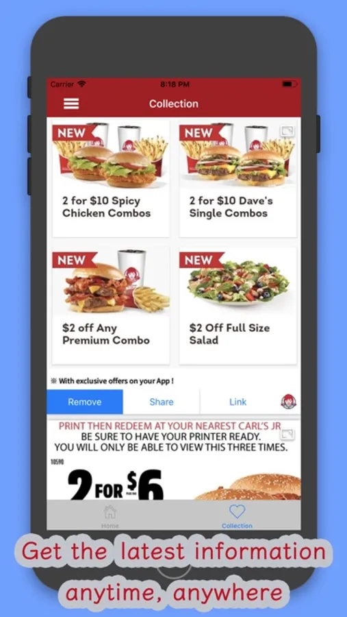 Tap on “Collect” button to save discount information in your mobile device then you can browse without internet connection.