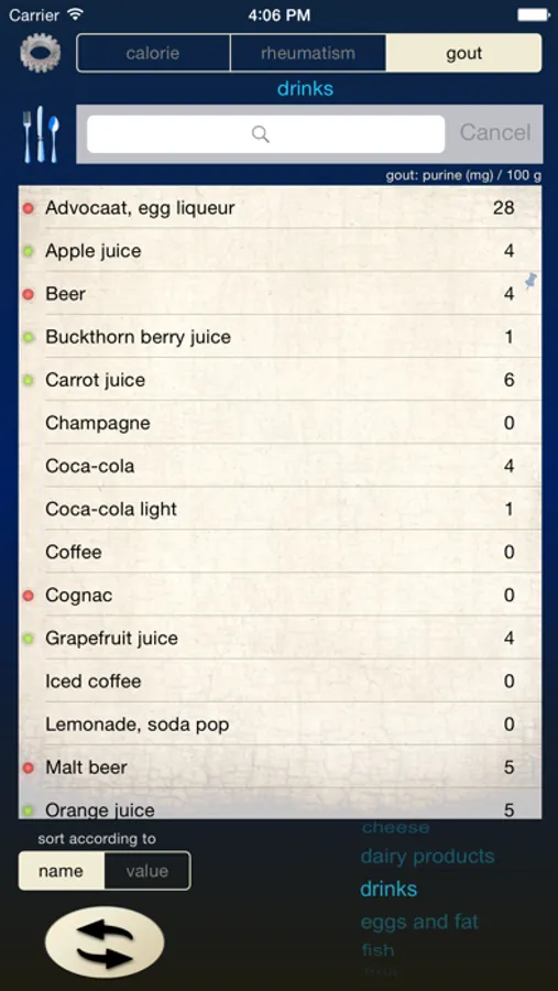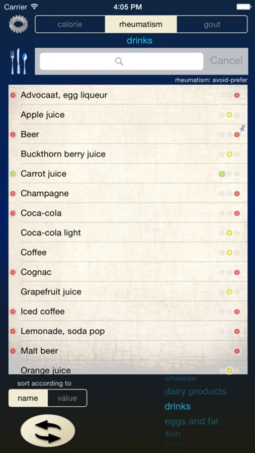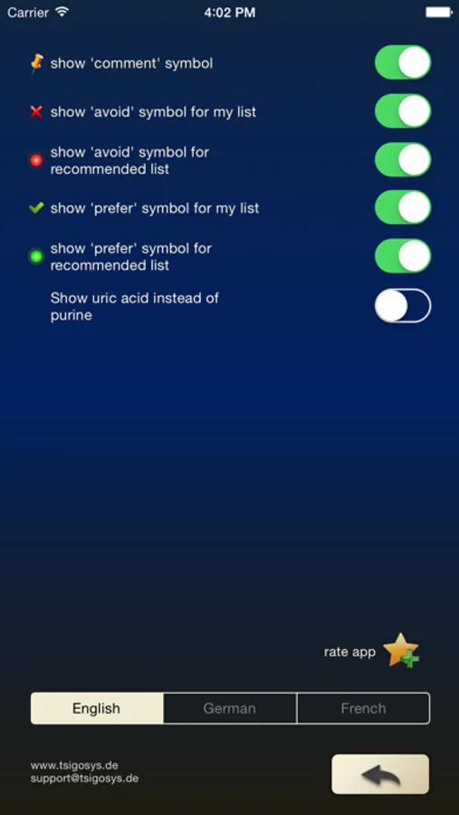 Own lists of foods that should be avoided or preferred can be created quickly and easily by pressing a button.