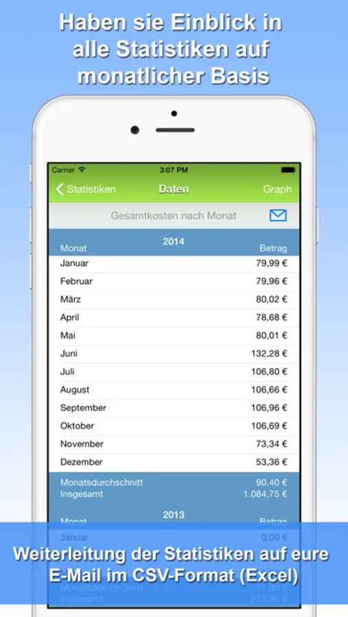 • monatliche Statistiken per E-Mail im CSV-Format (Excel)