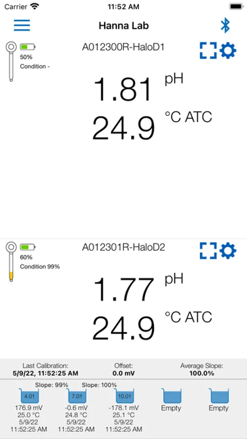 The Hanna Lab App turns an iPhone, iPad or iPod touch into a full-featured pH meter when used with a Hanna Instruments HALO® or HALO2 pH probes with Bluetooth® Smart technology, or a data management system when used with a Hanna Instruments HI98494 multiparameter Bluetooth portable pH/EC/DO meter or HI97115 Marine Master waterproof multiparameter photometer.