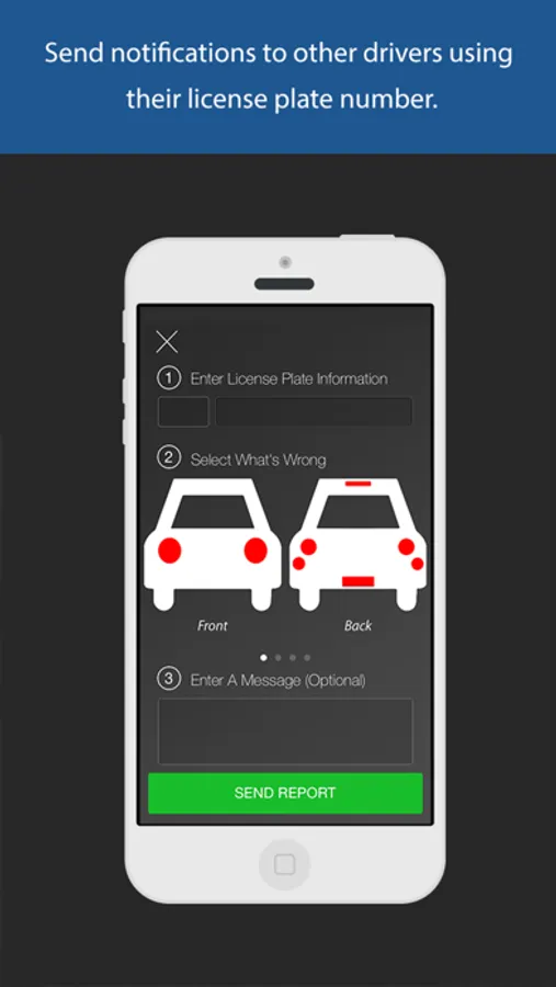 To report burnt out lights to other drivers, enter their license plate number, tap which lights are out on their vehicle, and hit send. They’ll receive a push notification straight to their phone alerting them of report. You can even send them a brief message along with your report, if you’re the talkative type!