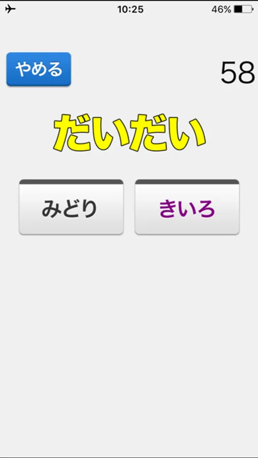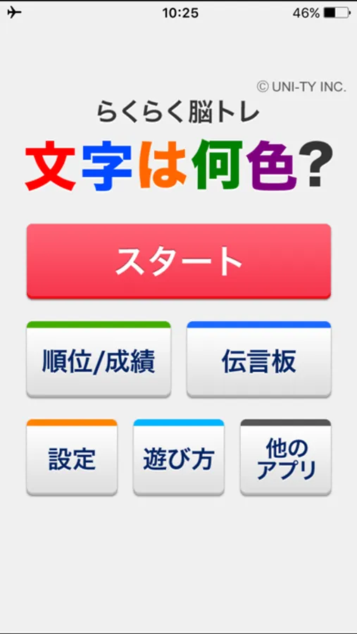 問題の文字が何色なのか、表示される色のリストから選んで答えるアプリです。
