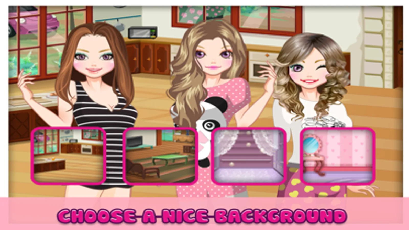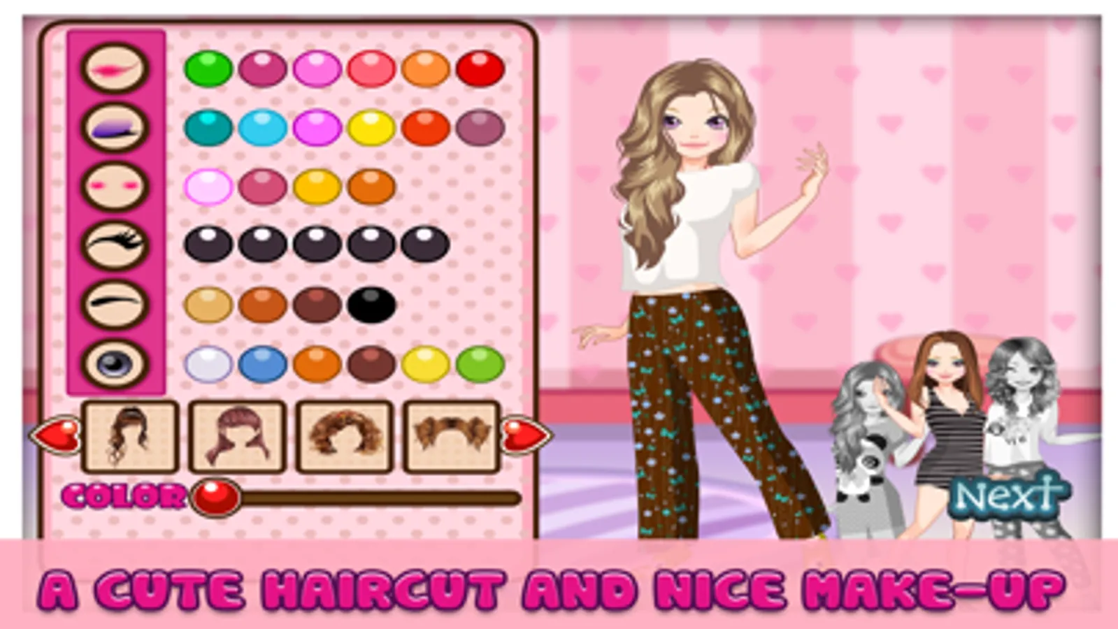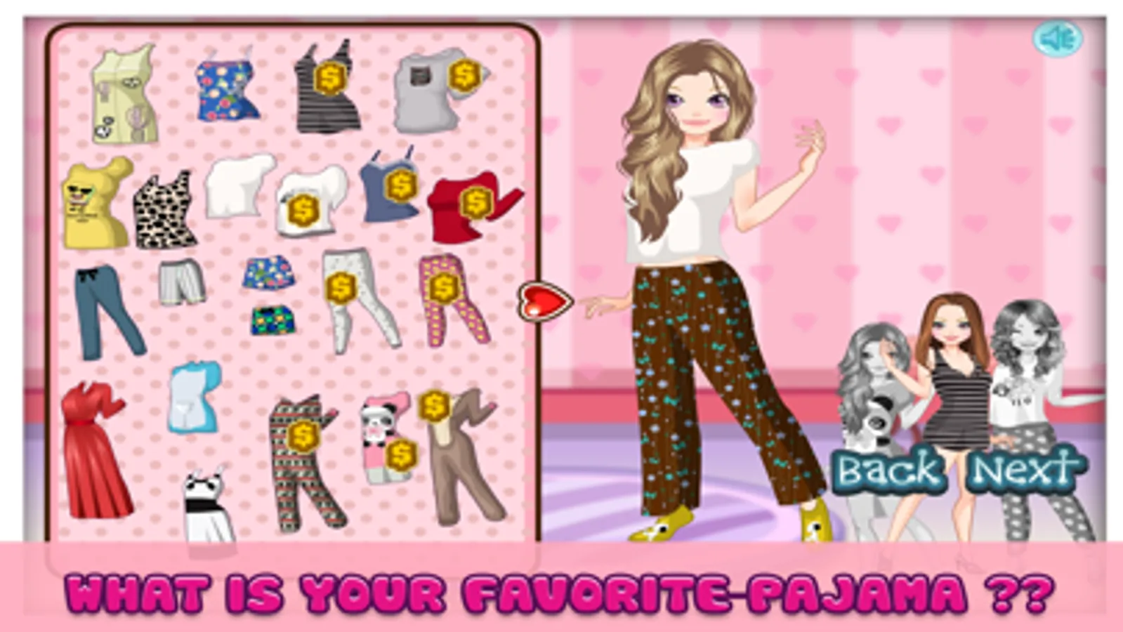 Play this dress-up game featuring three real fashion victims! It's summer again. Time to have a great Pajama Party.The days are warm and in the evening it's nice to go outside for a while, to have a stroll with your friends, wearing your most beautiful pajama. In this game you can choose the nicest look for these three friends. First a great hairstyle and make-up, and then some pajama’s, shoes, blouses and trousers in plenty. Will you make it a nice combination? Make these three friends look scrumptious!