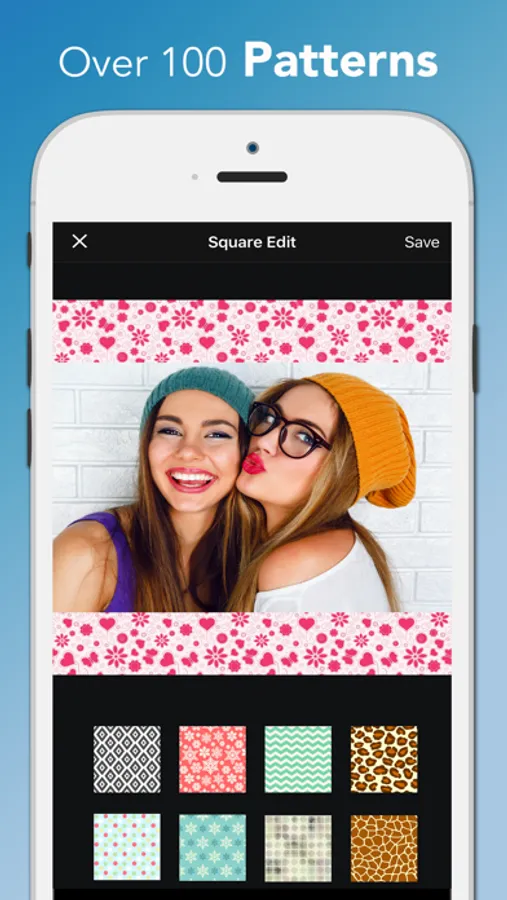 Use fashionable filters, pattern borders, frames, stickers and text. High resolution, print quality output.