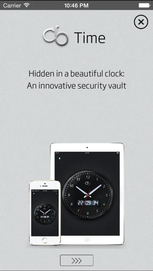 This app can not only be used as a simple watch with alarm function, but also as a high-security safe for all your personal data. This security measure is an integral part of the Apps design. By opening the watches glass and pressing the center, you can input an access code by using the clock hands. Once input, the code can be confirmed by pressing the center one more time.