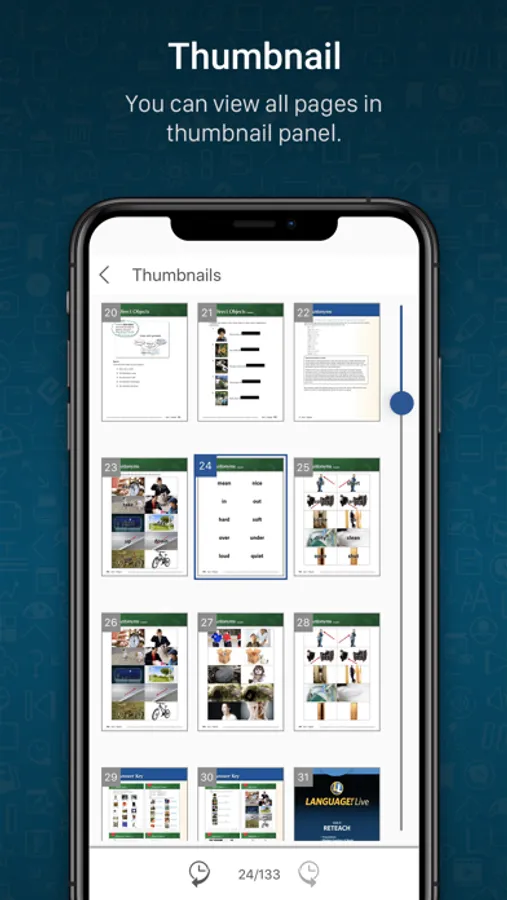 • Flexible navigation includes instant access to an interactive table of contents, page swiping, and ability to jump to specific pages