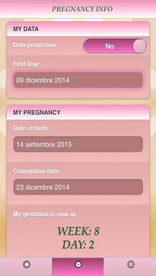 As a second step, you must also enter data on the "My Dates" depending on whether the pregnancy is already in progress or you are planning one.