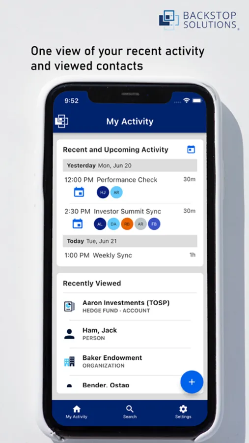 Whether you’re a fund manager travelling to a capital raising event or an investor attending on-site meetings with potential managers, Backstop Mobile ensures you always stay connected. Designed specifically to meet the needs of fund managers and investors, Backstop Mobile complements the capabilities our clients use every day on the Web App. Backstop Mobile allows you to create and interact with contacts and activities while on the road giving you all the information you need at your fingertips.