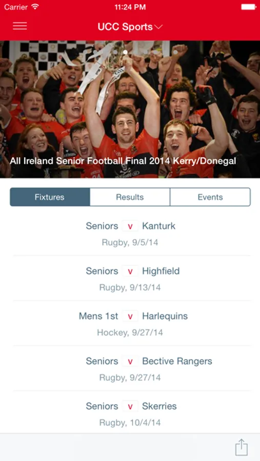 - Notifications from UCC clubs on their latest news, events, fixtures and results.