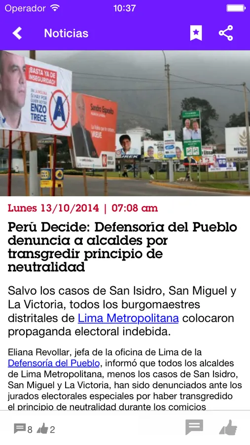 Aplicación de Latina que busca empoderar a los peruanos durante los procesos electorales. Cuenta con información actualizada de política, la opinión de los periodistas más influyentes, las últimas encuestas, la información de los candidatos y la voz de toda la ciudadanía.