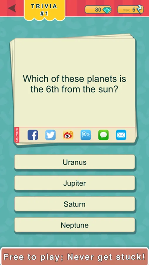 - Stuck on a question? You can always pass it for free! No in-app purchase necessary!