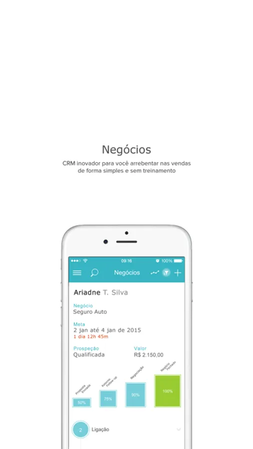 • Trabalhe e acompanhe todo o processo de vendas desde a prospecção até o fechamento do negócio