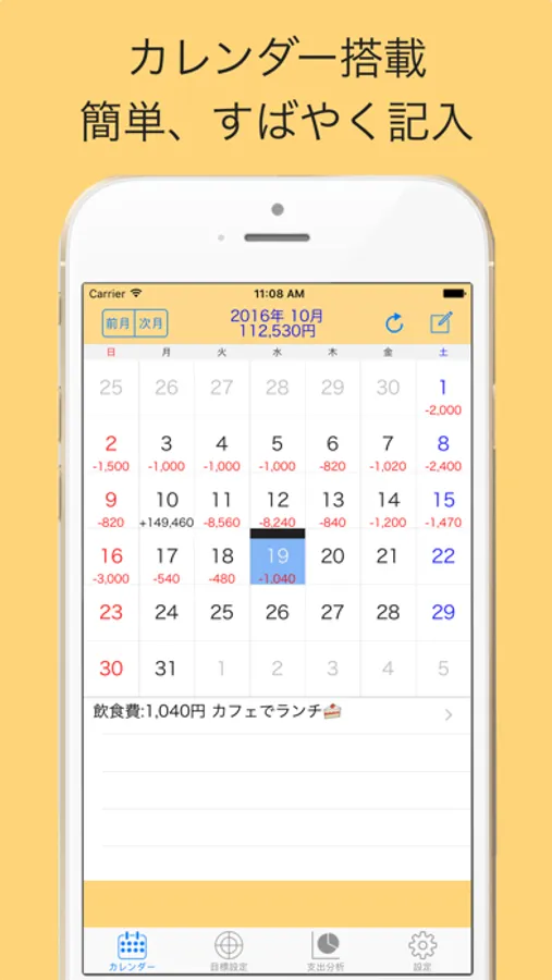 目標を初めに設定し、減点方式でつけてゆく家計簿です。かんたん操作で継続させます。倹約できない方、記入が続かない方へぜひおすすめです。
