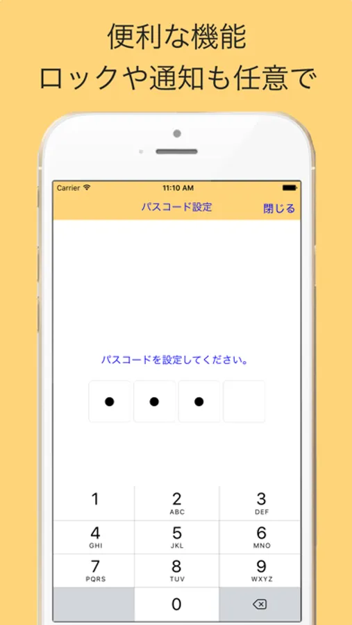 他人に見られたくない場合はパスワードを任意で設定が可能。