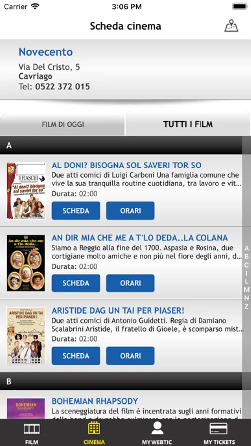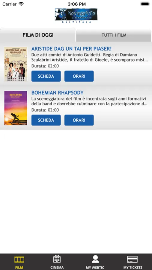 Applicazione di Crea Informatica, per l'acquisto e la prenotazione dei posti nella prestigiosa Multisala Novecento di Cavriago.