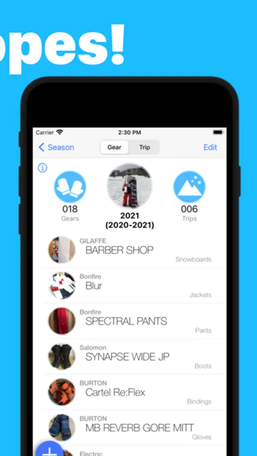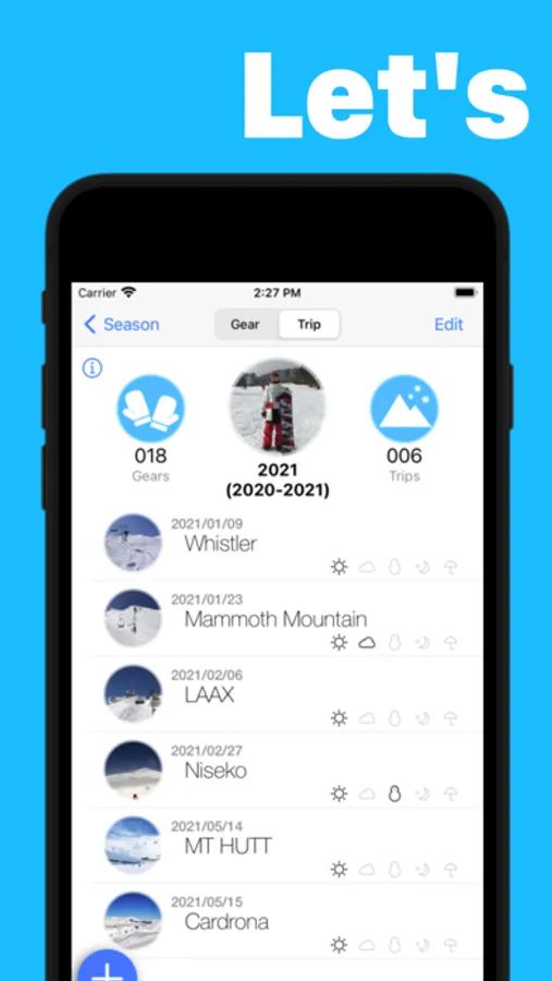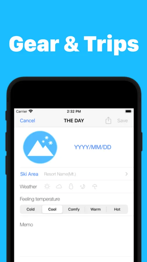 - Recording data in every snow season, you can note dates and skiing slopes, the weather, gears, photos, and more!!
