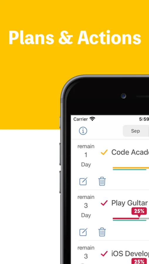 Simply enter the day-to-day activities to the set target value, you can check the remaining amount and the achievement and it's rate in the list or calendar or graph.