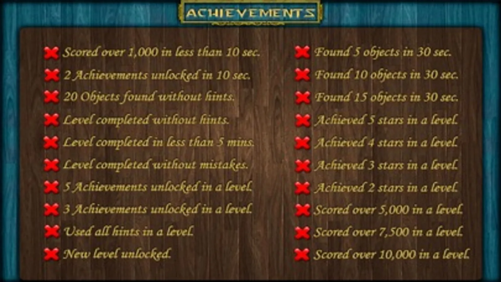We do not bore users with pointless stories that distract them from the goal of unlocking achievements and finding objects and of course, we don’t force users to make in-app purchases in order to keep playing, your only task is to find objects and we have hint feature for free to help you.