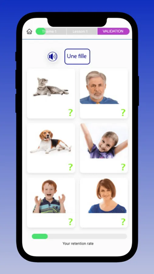Knowing your memory well is essential to improve your learning ability. Start by testing your memory, then let Foxpitoo prepare a personalized program based on your results. Foxpitoo's algorithm selects the visual or auditory exercises best suited to your memory, so you can learn a foreign language while having fun, without ever using translations.