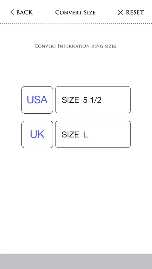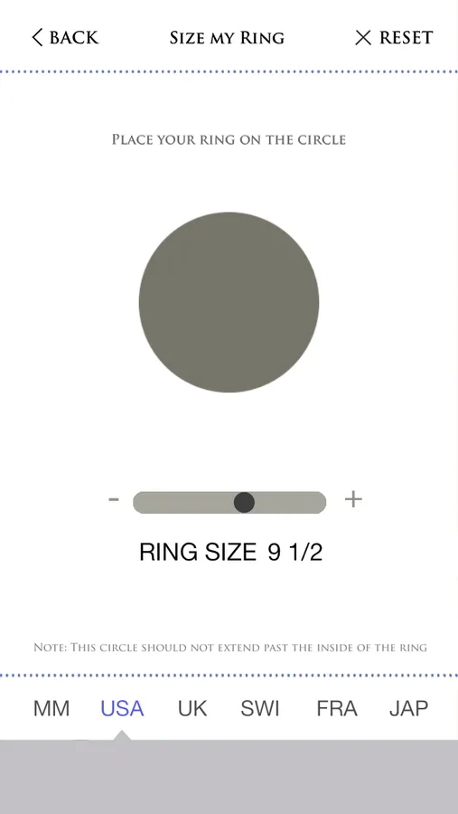The app works seamlessly for the USA size, UK size, European sizes, or Asian sizes, and also with the perimeter of the ring in mm.