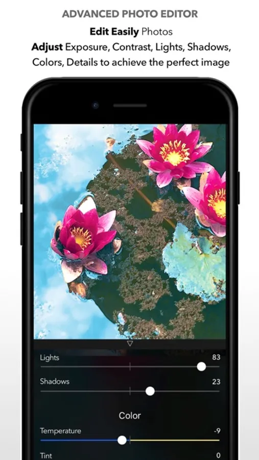 Edit easily all your photos thanks to the integrated editor. Photo Editor is fast and complete, allowing you to make your shot even better. You can adjust: Exposure, Contrast, Lights, Shadows, Color Temperature, Saturation, Vividness, Structure, Sharpness, Photo Noise, and Vignette. Complete with all the Tools to resize, crop, and adjust your photos.