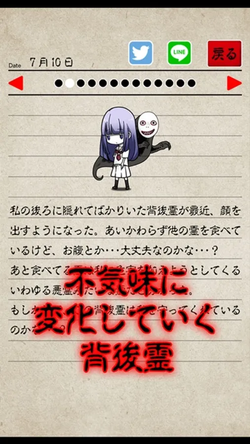 背後霊の姿が変化するごとに日記が更新され物語が進んでいきます。