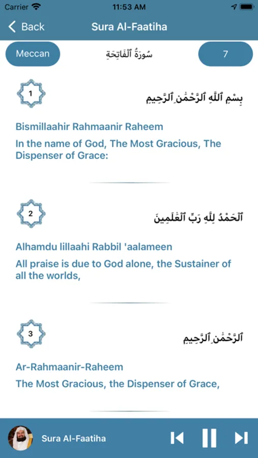 1.القراءن كاملا بالصوت مع الامكانية بتنزيل الصور والآستماع من دون الحاجة إلى الآنترنيت, كما يمكن الآستماع إلى أكثر من صورة تلقائيا