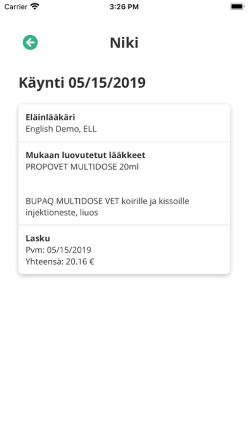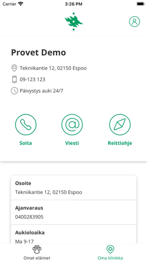Eläinsairaala Mobiili on Yliopistollisen eläinsairaalan asiakkaille maksuttomana palveluna tarjottu sähköinen terveyskortti. Sovelluksen avulla asiakkaat voivat katsella omien lemmikkiensä hoitotietoja. Sovelluksella voit esimerkiksi tarkistaa helposti rokotusten ajantasaisuuden, jatkohoito-ohjeet sekä laboratoriotulokset. Sovelluksella voit myös tallentaa eläinten hoitomuistiinpanoja sekä tallentaa lemmikkisi kuvan eläimen terveyskorttiin.