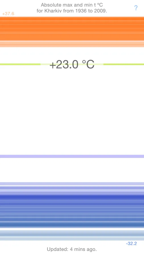 TempHistory shows the current temperature at your location along with absolute minimum and absolute maximum per each previous year. The app requires access to internet and your location.
