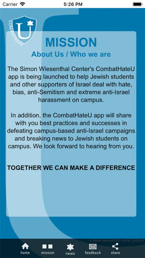 The Simon Wiesenthal Center's CombatHateU app is designed to help Jewish students and other supporters of Israel deal with hate, bias, anti-Semitism and extreme anti-Israel harassment on campus.