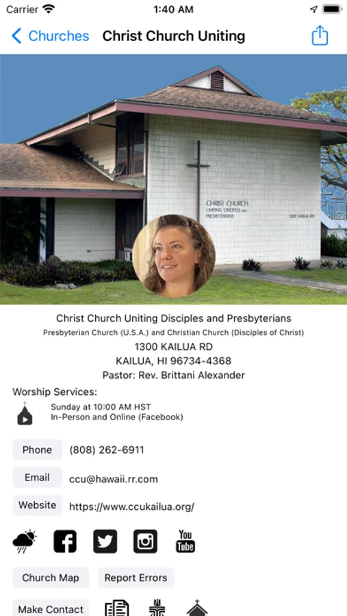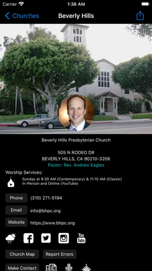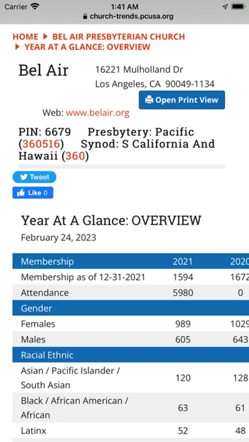 The PoP Churches App provides key information on every Presbytery of the Pacific church, including language spoken, times of worship, the church address, the pastor’s name and photo, a photo of the church, a detailed map of the church’s location, step-by-step directions to the church from the user’s current location, and the ability to phone (on iPhones) and send emails to churches. The PoP Churches App also includes the ability to view church websites, Facebook pages, Twitter pages, Instagram pages, YouTube channels, and PC(U.S.A.) individual church statistics and trends over the past two and four years. Touching the name of most pastors will display their associated PC(USA) Minister Directory information. Links to Live Streaming of worship services are provided for most churches, along with an ability to set calendar events for upcoming worship services.