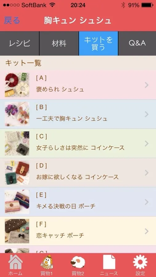 「モテ期診断はこちら」からモテ期診断で遊んでいただき、診断で表示された自分のアイテムを「モテ期予報」からstartとボタンを押して選択します。 選択したページで、作り方専用ムービーを見ながら診断アイテムを作ることが出来ます!初心者でも簡単に作れますよ!診断アイテムの作成に必要な材料をセットにしたキットの販売もしておりますので、「キットを買う」ボタンから簡単に購入ができます。 作り方ムービーとショッピングサイトが一緒になった便利なアプリです! 診断で表示されたアイテム以外にも作り方専用ムービーを見て他のアイテムも作って編み物をマスターすることも可能です!出来上がったアイテムは、「マイページ」で登録して自分の作品を一覧にまとめたり、「マイページ」から、作品ごとにfacebookやTwitterなどのSNSにシェアすることができます! 自分以外の作品も気になる方は、「投稿作品」から、みんなが投稿した作品を見ることができちゃいます!