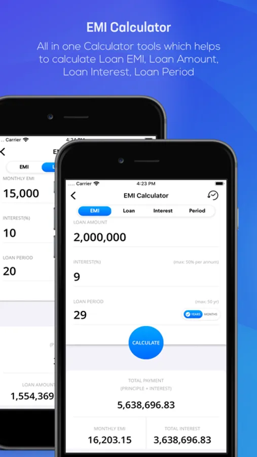 ● EMI Calculator app allow to calculate following values by inputing all the other values.