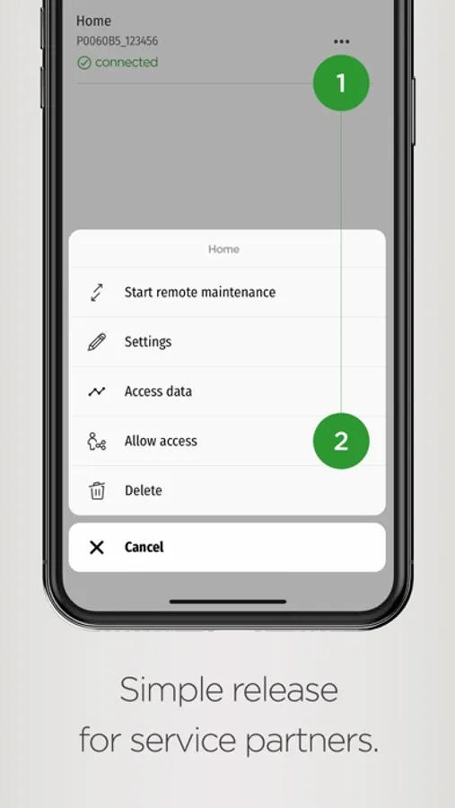 • For remote maintenance, the service partner can be given temporary access to the app