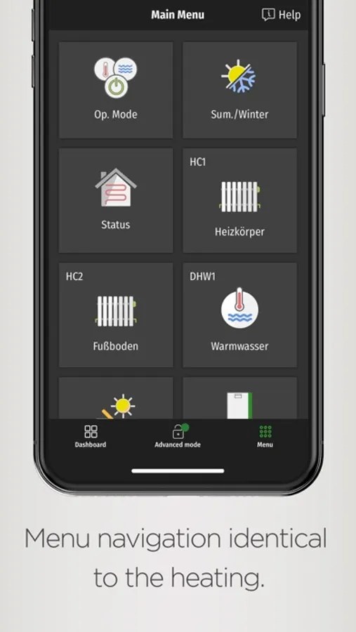 • Dashboard shows the same individually configurable start screen as the heating control panel (from system software V4.0)