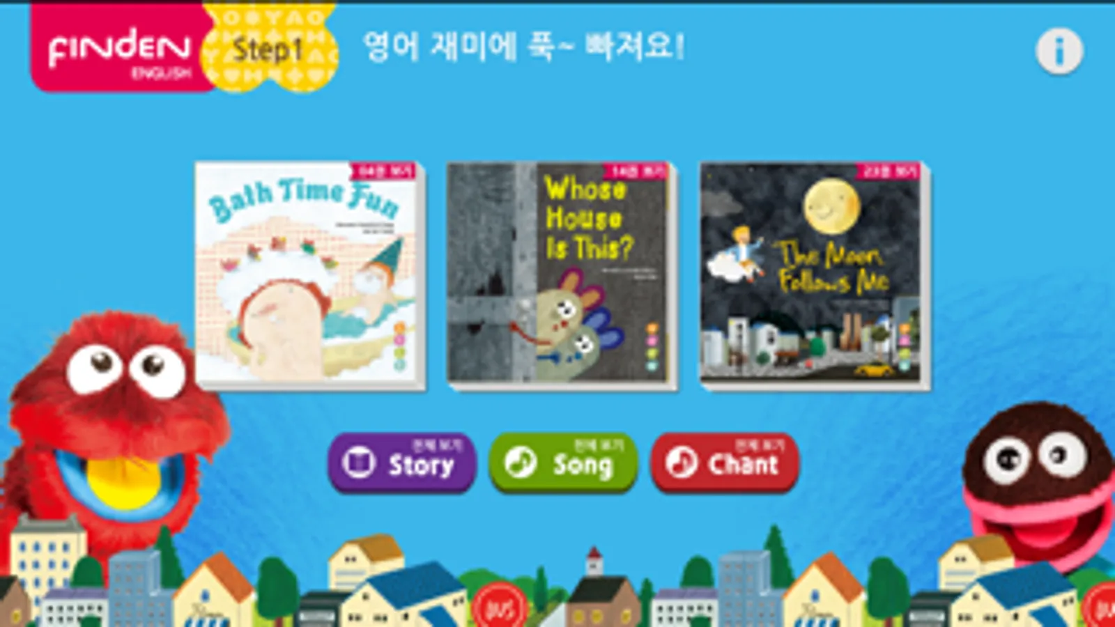Finden English STEP1의 스토리북 중, 세 권의 스토리북 관련 영상을 App으로 담았습니다. 스토리 애니메이션, 스토리 송, 스토리 챈트를 경험할 수 있습니다.