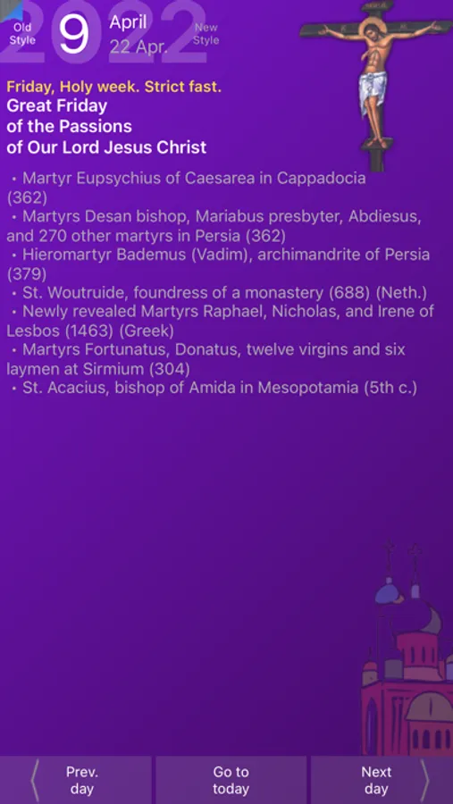 Uniquely, the application enables jumping to a certain date related to the Paschal cycle of the year, both in the past and in the future!